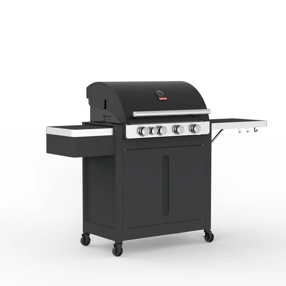 Gratarul este dotat cu sistem reglare al tirajului, incorporat in capacul acestuia cat si in partea de jos a cuvei, pentru un control bun al temperaturii, tava pentru colectare a grasimii.